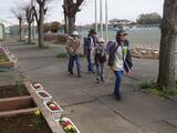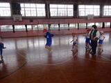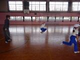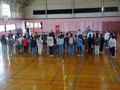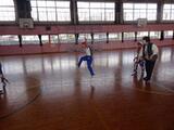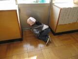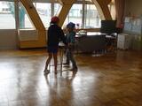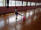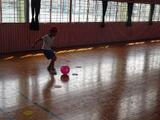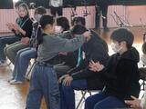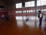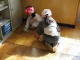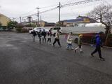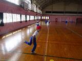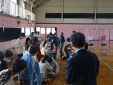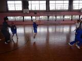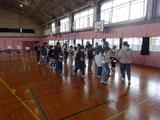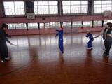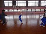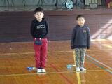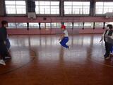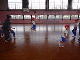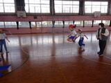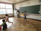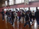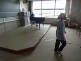 新聞紙じゃんけんをしました。じゃんけんで負けると、足元の新聞紙を半分にしていきます。