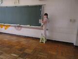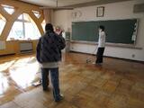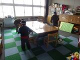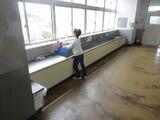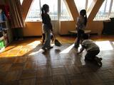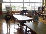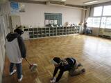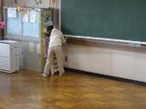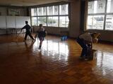 教室の机を出して、掃除をして、水拭きをして、ワックスは6年生が掛けてくれました。