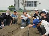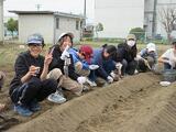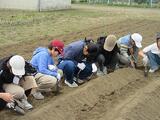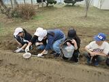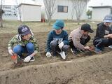 この日のために、用務員さんが、たい肥をまき、耕運機で耕し、畝を作って準備してくださいました。いつもありがとうございます。