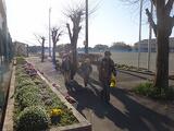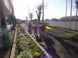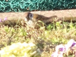 花壇とすずめ🐤