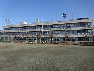 吾妻小学校側から校庭を写真にとると、先にも校舎が写ります。