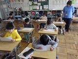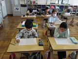 プリントの文を、大きな声で読みました。