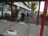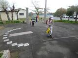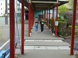 ☁曇り空の天気、雨が心配ですが、児童は元気に登校しています。