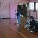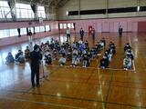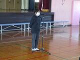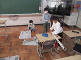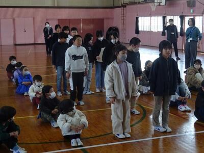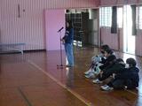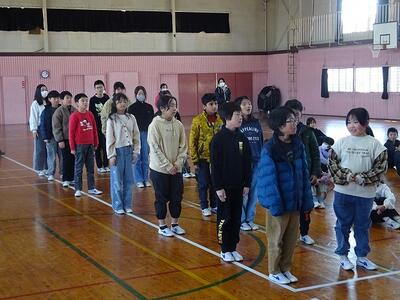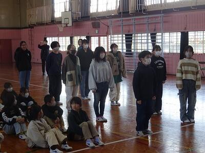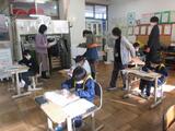 車いすに乗っている気持になって、体育館から戻っていきましょう。