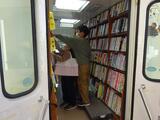 今日は、みんなが楽しみにしている移動図書館の日です。多くの児童が借りていました。今月は、どんな本を読むのかな?バスの中は、児童の笑顔が溢れていました。😊