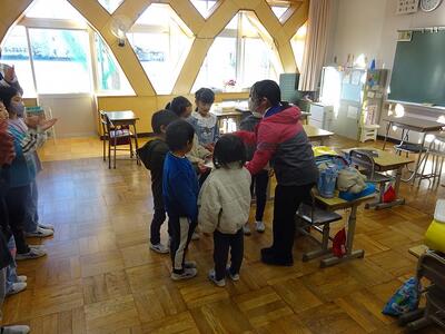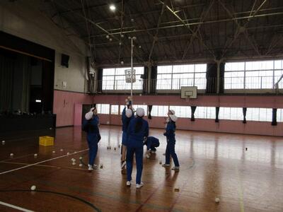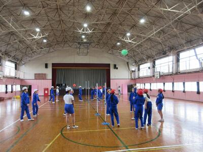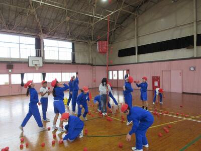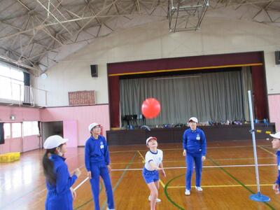 2グループに分かれて行いました。フワフワと飛ぶ風船をラリーするのは意外と難しい!みんなで協力しながら楽しんでいました。