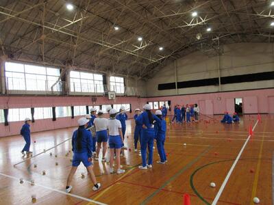 今日はクリスマス♪ということで、高学年の体育はそれぞれの学年で種目を考えてスポーツレクを行いました。