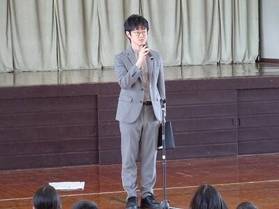 代表児童の発表です。冬休みに頑張りたいこと・やってみたいことを発表しました。