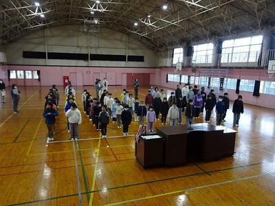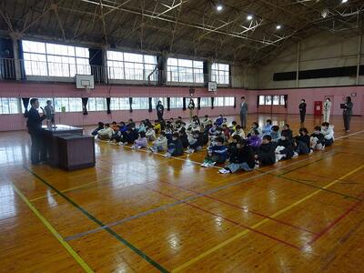体育館で全校集会を行いました。寒い中でも、しっかりとお話を聴き、元気よく校歌を歌っていました。