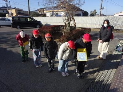 晴れてはいますが、風の強い日になっています。体感温度は実際より低くなっているでしょう。その中でも、吾妻っ子たちは元気に登校しています。