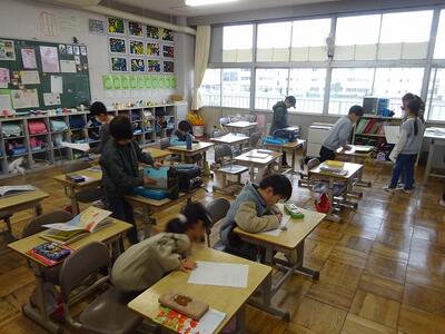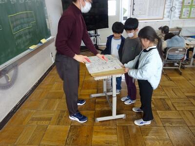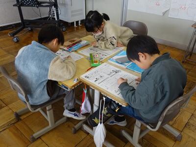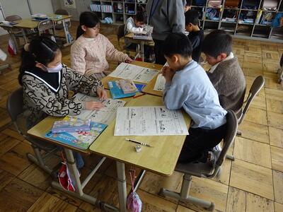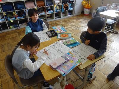 グループで、プリント学習をしていました。