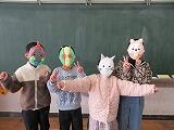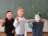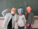 作ったお面で、はいポーズ!