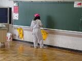 今日は、月に2回程度ある特別教室清掃の日です。全体の人数が少ないので、普段は教室やトイレ・水道等を清掃している児童が、決められた日に特別教室の清掃を行います。