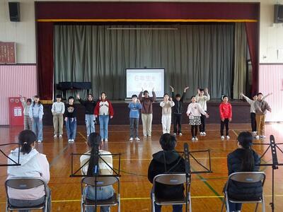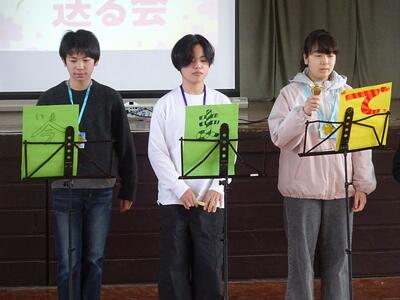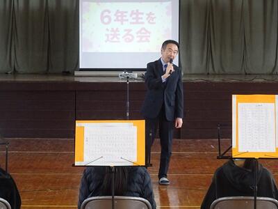 呼びかけと歌です。6年生と一番長く過ごしてきた5年生。メッセージにも心がこもっていました。