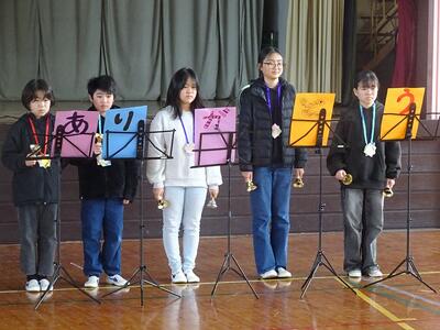6年生からは、ハンドベルで「キセキ」の演奏のプレゼントです。