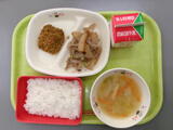 今日の給食は、ココアコッペパン、オムレツ、キャベツとコーンのソテー、ミートボールスープ、牛乳でした。