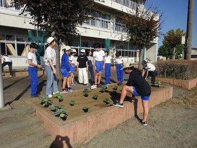 各学年が、学級花壇に苗を植えました。みんなAzmaxで取り組んでいました。