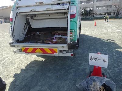 パッカー車の中に段ボールが吸い込まれていきます。