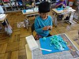 1年生図工「スタンプぺったん」と「うきうきボックス」の授業の様子で