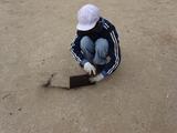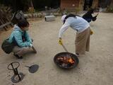 焼いたら、たわしでこすります。(すすをとります。)とったら、タオルでふきます。