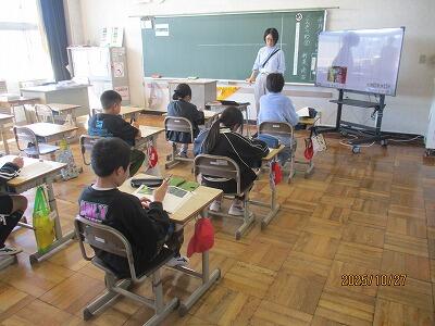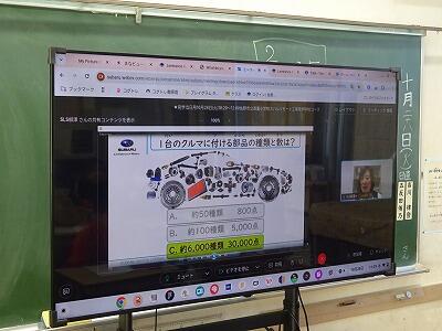 5年生社会では、オンラインでの工場見学を行いました。自動車が注文されてから完成するまでの工程を、動画とクイズで説明してくださいました。教科書での学習と違って、実際に組み立てや検査をしている様子を見ることができて、学びが深まりました。
