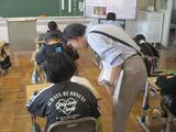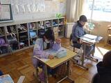 2年生算数の様子です。4の段の練習をしていました。お友達と練習、一人で繰り返し練習、さあ、先生に聞いてもらいます。合格して喜んでいる児童、もっと完璧にするために練習している児童!Azmaxです。