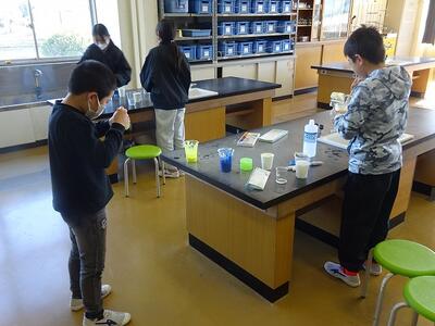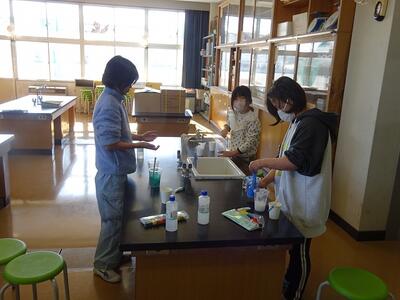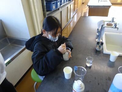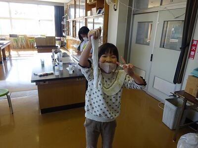 スライムづくりをしました。シェービングフォームも活用して、のびるスライムをつくっている児童もいました。