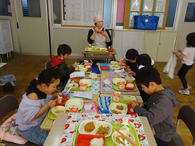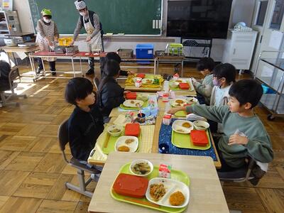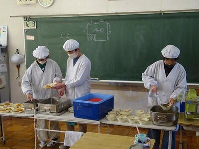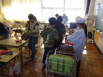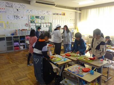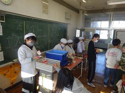 給食センターから栄養教諭の先生を講師にお迎えして、「食べ物の栄養パワーを知ろう」の授業を行いました。