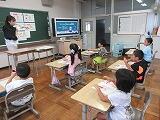 感染症が流行する季節となり、1年生は養護教諭から手洗いの大切さと正しい手洗いの仕方を教えてもらいました。