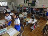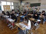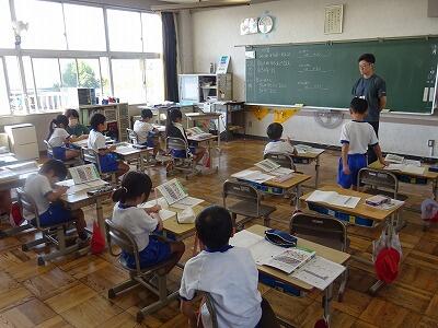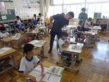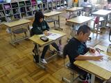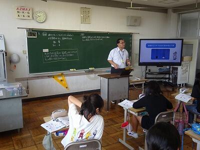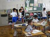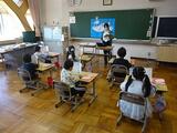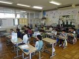 2時間目の授業の様子です。 1年生 国語「くじらぐも」です。音読をしています。黒板の、くじらぐもが素敵ですね!   2年生 算数 教室や廊下で、かけ算の式で表せるものを探しています。     3年生 国語 テストの確認をしています。   4年生 算数 がい数の学習をしています。   5年生 外国語 動物の言い方を練習しました。   6年生 理科 金属を溶かした水溶液から取り出した物質は、もとの金属であるか考えました。   吾妻っ子たち!今日もAzmaxです。