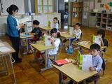 感染症が流行する季節となり、1年生は養護教諭から手洗いの大切さと正しい手洗いの仕方を教えてもらいました。   まずは、手洗いがきちんとできているかチェックをしました。 専用のクリームを手につけ・・・ よく伸ばして・・・ いつもの様に手洗いをします。 手を洗った後にライトを当ててみると・・・ 洗えていない部分が白く光ります。 全然洗えていなかった! と驚く子どもたちでした。     どんなところが特に洗えていなかったかよく観察をしました。 爪、手の甲、手首が白く光っている子が多かったです。   次に、養護教諭から、正しい手の洗い方を教えてもらいました。 歌いながら一生懸命練習しています。   教えてもらった手の洗い方で最後にもう一度、よく手をよく洗いました。   手洗い名人になった1年生!休み時間後や給食の前に水道を見ると、今日教えてもらったことを早速実践していました。体調を崩すことなく、元気に過ごしてほしいです。