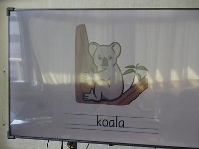 国語「くじらぐも」です。音読をしています。黒板の、くじらぐもが素敵ですね!
