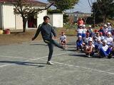 先生とパスをしながら、いろいろな蹴り方を見せてくださいました。