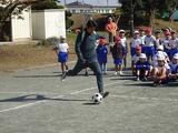 全校児童にお話をしてくださいました。最初は何も上手にできなかったこと。頑張っているうちに、少しずつできるようになっていったこと。周囲の人たちに支えられてサッカーを続けていけたこと。当たり前のことを当たり前にやることが難しいけれど大切なことであること。算数のたし算の学習なども例にとって児童に分かりやすく伝えてくださいました。