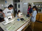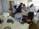 佐野市陸上記録会で、人が少なくなっているので合同で家庭科の授業を行いました。ミシンボランティアの方にいただいた端切れを使って、小物を作りました。少し前までは、ミシンにてこずっていたみんなも、上手に使えるようになっていました。