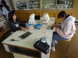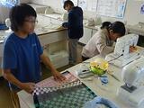 佐野市陸上記録会で、人が少なくなっているので合同で家庭科の授業を行いました。ミシンボランティアの方にいただいた端切れを使って、小物を作りました。少し前までは、ミシンにてこずっていたみんなも、上手に使えるようになっていました。         素敵な作品が、たくさんできていました!