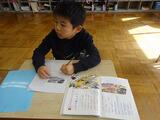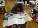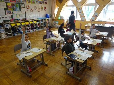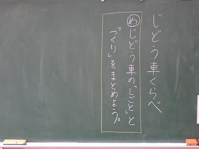 1年国語「じどう車くらべ」です。文章に出てくる大切な言葉をおさえながら、読み取っていきました。どの児童も、手を挙げて進んで発表していました。