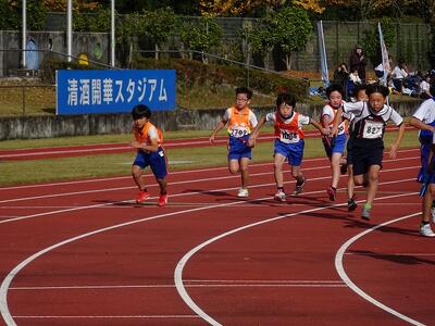 11月11日(火)、5・6年生16名が、清酒開華スタジアム(佐野市運動公園陸上競技場)で行われた佐野市小学校陸上記録会に参加しました。