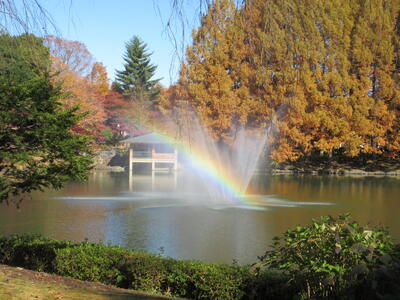 栃木県立博物館に到着しました!   栃木県中央公園を歩いて博物館に向かいましたが、紅葉もきれいでした!   昭和大池の噴水には虹も…。   最初は簡単に館内の観察です。   時間もあまりないので、地層に関する展示をざっと見学しました。   床に潜んだ貝の化石も…。 探しても見つからなかったのは、探検バックの下に隠れていたからでした。   理科の学習にもAzmaxです!