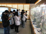 昼食を取り終え、みーたんの横で集合写真を撮りました!   そのあと、短い時間でしたが自由観覧です。 展示室でみーたんの元になったミミズク土偶を見ました!   人文系展示の最後には、吾妻村や田中正造もいました! このあと、午後の勉強です!