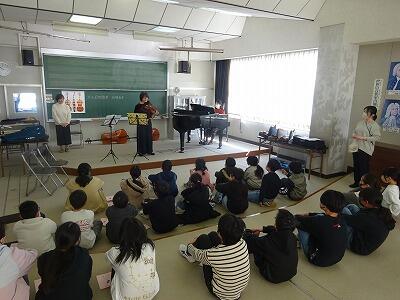 3名の方々を講師にお迎えして、ヴァイオリンやチェロの体験(5・6年生)演奏会(全学年鑑賞)を行いました。