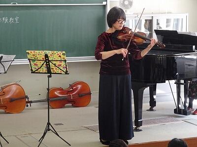 「小さな世界」の演奏の後、ヴァイオリンについてのお話、演奏の仕方を教えていただきました。