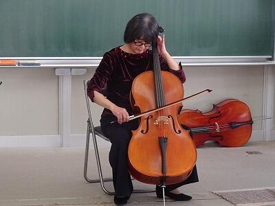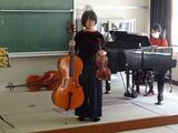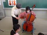 何名かの児童はチェロ体験もしました。