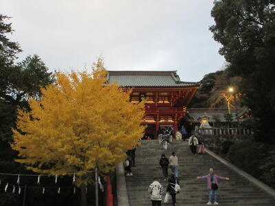 鎌倉での班別自由行動も紆余曲折を経て、無事集合場所の鶴岡八幡宮にみんな集合しました。 鶴岡八幡宮の銀杏もとてもきれいでした! これからホテルに向かいます。