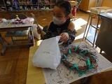 自分たちで育てた、朝顔のつるで作ったリースに飾り付けをしました。