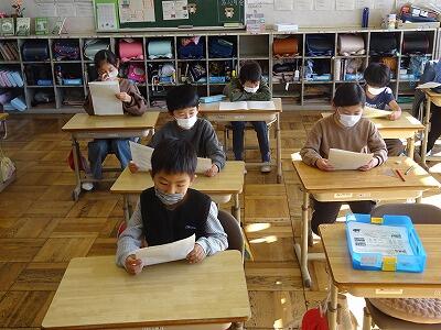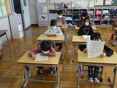 図工 1年生 自分たちで育てた、朝顔のつるで作ったリースに飾り付けをしました。 さつまいものつる、朝顔のつる、どちらでもリース作りをしましたが、サツマイモの方が作りやすかったそうです。       2年生 桃梨祭の練習をしています。全体で読み合わせをしました。     体育館でも、練習しました。     桃梨祭が楽しみです。🐟