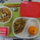 今日の給食は♦日本味めぐり~鹿児島県~♦ ごはん、ぶりフライ(小袋ソース)、さつま揚げと野菜の炒め物、さつま汁、牛乳でした。