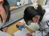 浮沈子(ふちんし)を行いました。ペットボトル内の水に浮かべた容器を容器を押す力で沈め、離すと浮かべるものです。 アルキメデスの原理とパスカルの原理の応用ですが、子どもたちは、単純に浮き沈みを楽しんでいました。 浮いている魚が🐟 ペットボトルを押すと沈みます。 ビー玉やビーズを沈めたり、水に色を付けたりしていました。
