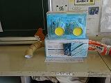 浮沈子(ふちんし)を行いました。ペットボトル内の水に浮かべた容器を容器を押す力で沈め、離すと浮かべるものです。 アルキメデスの原理とパスカルの原理の応用ですが、子どもたちは、単純に浮き沈みを楽しんでいました。 浮いている魚が🐟 ペットボトルを押すと沈みます。 ビー玉やビーズを沈めたり、水に色を付けたりしていました。