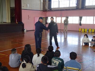 駐在所・SS(スクールサポーター)生活安全課・市役所危機管理課、の方々に来ていただき、不審者対応の避難訓練を行いました。
